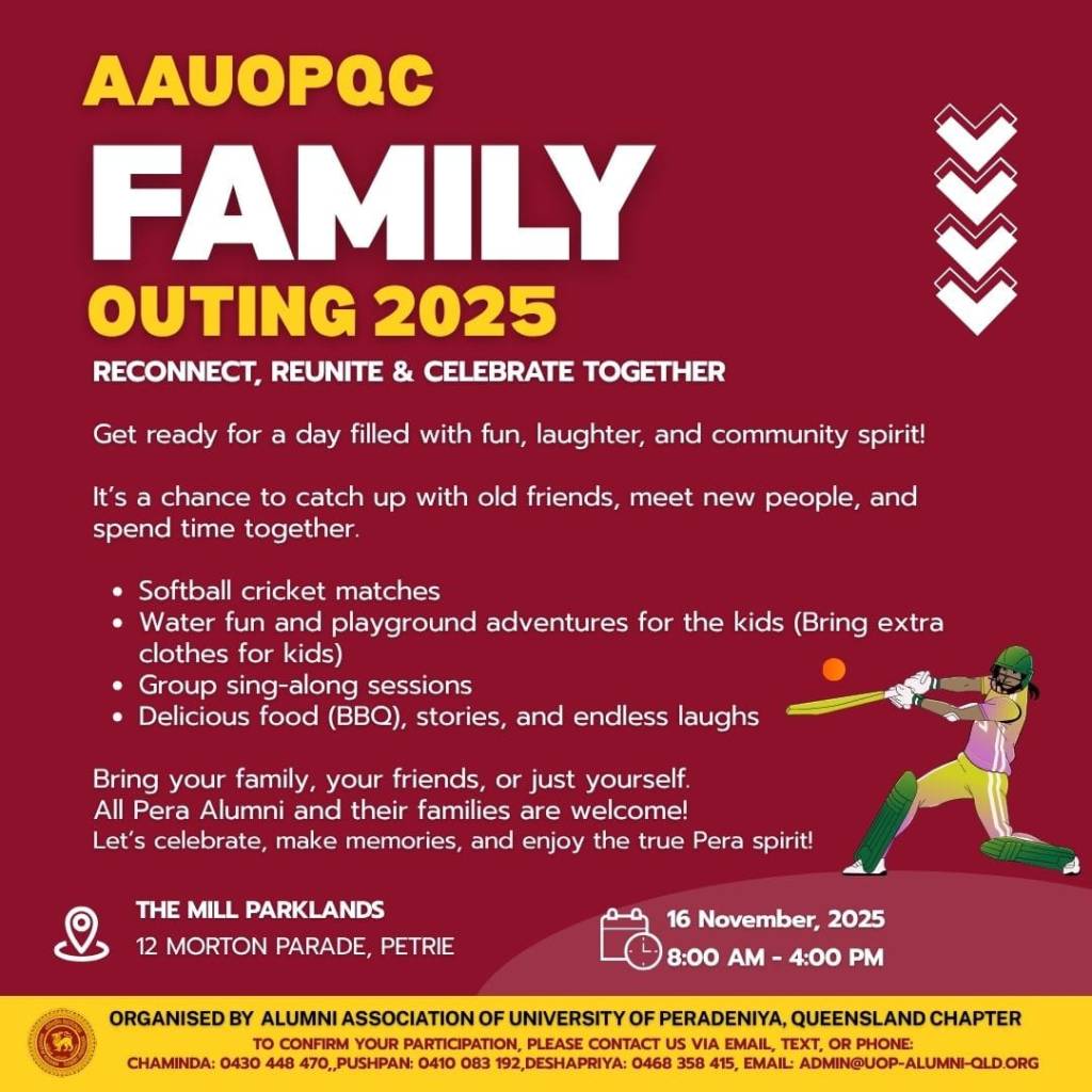 AAUOPQC’s first family get-together is scheduled to be held on 16th November 2025 at The Mill Parkland Petrie. We are excited to announce AAUOP’s very first family outing—a wonderful opportunity to reconnect with fellow alumni and their families in a relaxed, kid-friendly setting! All Pera Alumni and their families are invited.