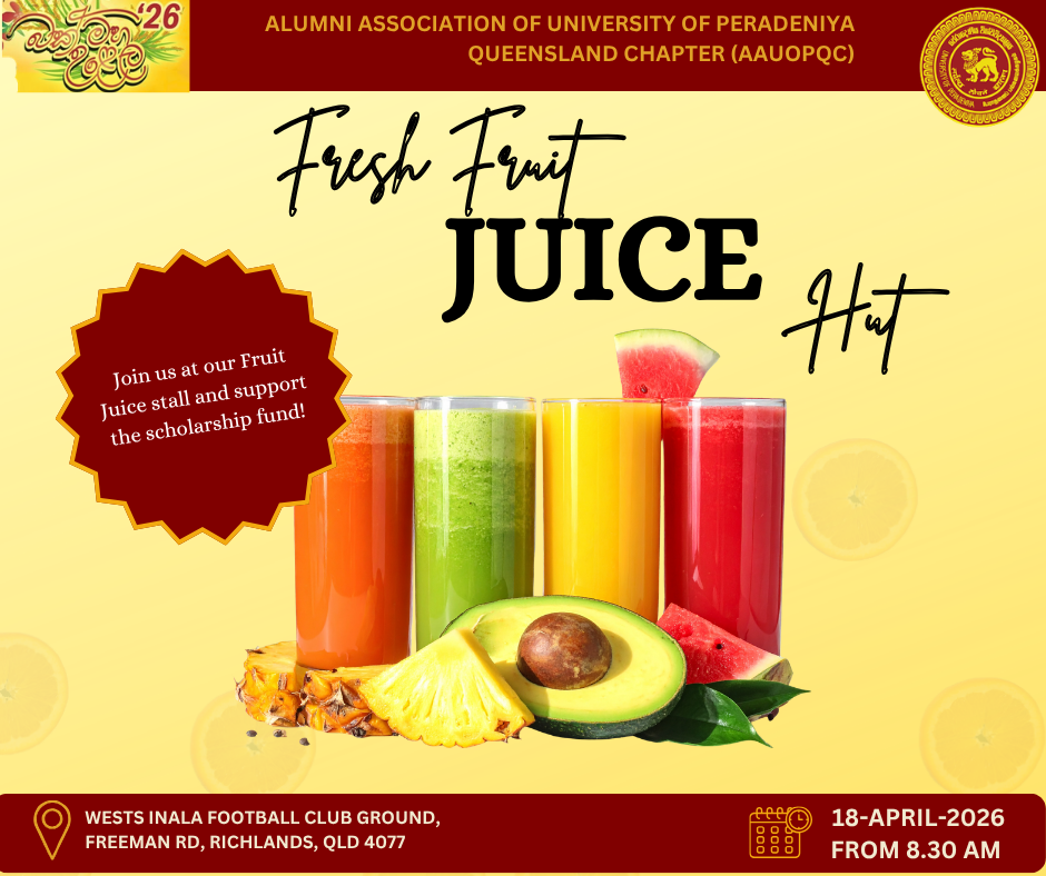 The Alumni Association of the University of Peradeniya Queensland Chapter was proud to be part of the Sri Lankan New Year Festival, where the fruit juice hut added to the festive atmosphere and community spirit of the celebration. This vibrant event brought people together to enjoy the traditions, flavours, and cultural richness of Sri Lanka.